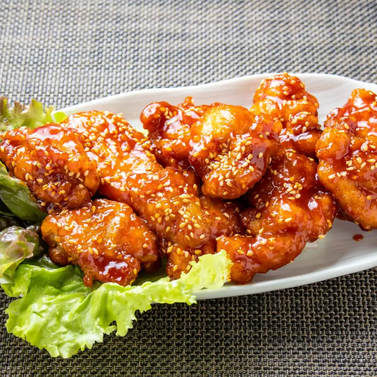 We start with premium boneless chicken, cut into bite-sized pieces for easy enjoyment. Each piece is coated and fried until golden and crispy on the outside, while remaining juicy and tender on the inside. This careful cooking process ensures that the chicken holds its crunch even when coated with sauce.